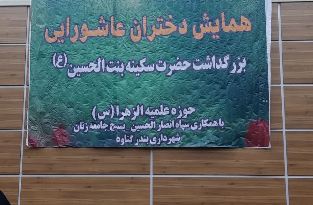 مراسم شهادت حضرت سکینه(س) با عنوان دختران عاشورایی به همت مدرسه علمیه الزهرا (س) گناوه با همکاری سپاه انصارالحسین(ع)، شهرداری و گروه های فرهنگی شهرستان در تالار بهزاد برگزار شد.