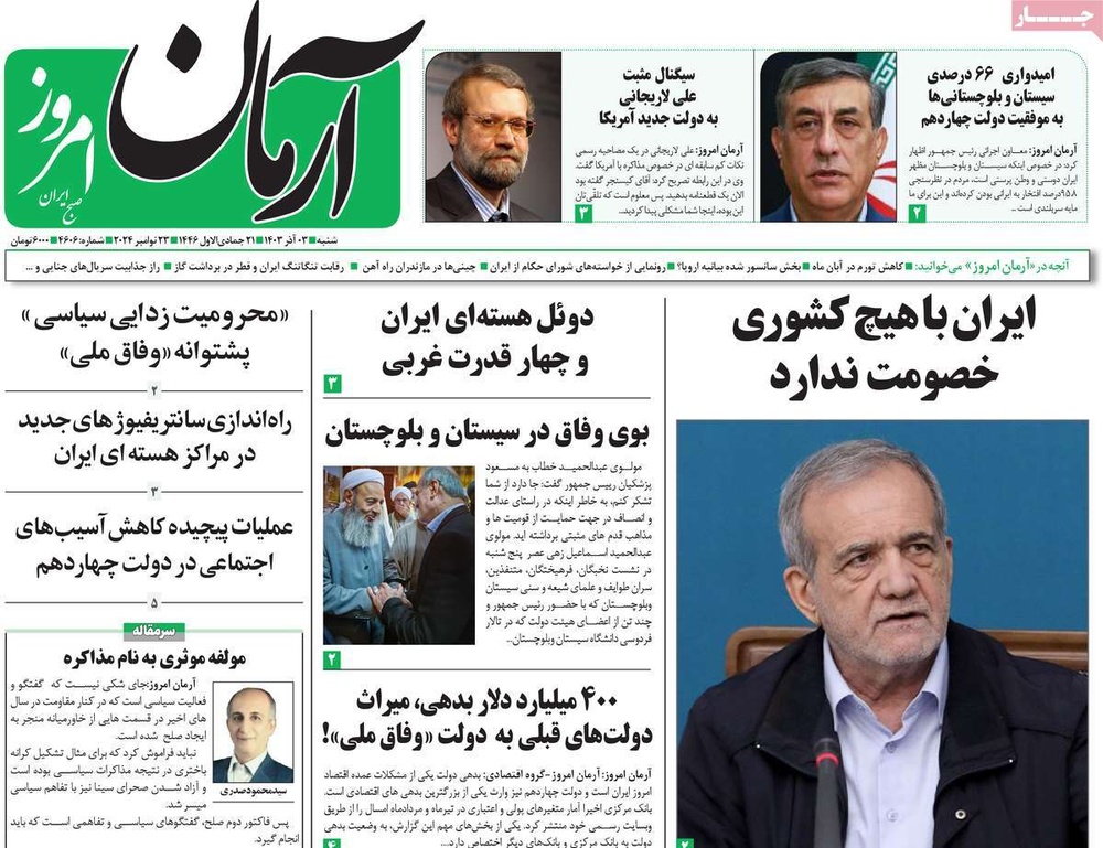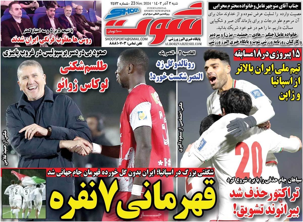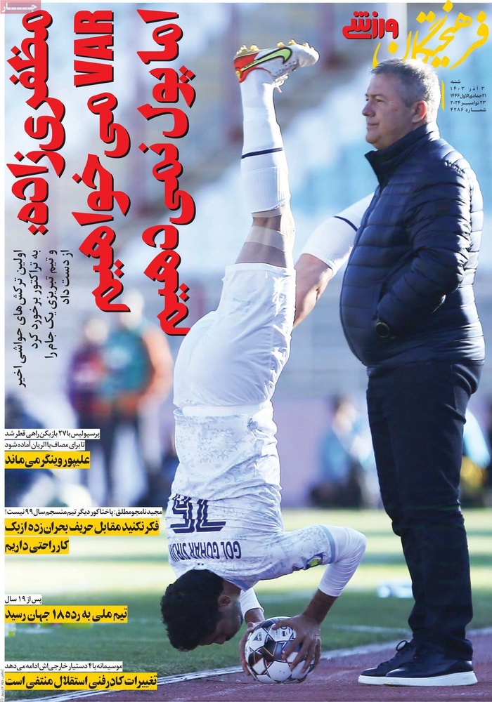 مطبوعات ۳ آذر ۱۴۰۳ - ۰۷:۲۹ کد مطلب: 135384 دریافت تصاویر صفحه اول روزنامههای شنبه ۳ آذرماه ۱۴۰۳ برچسبها مطبوعات