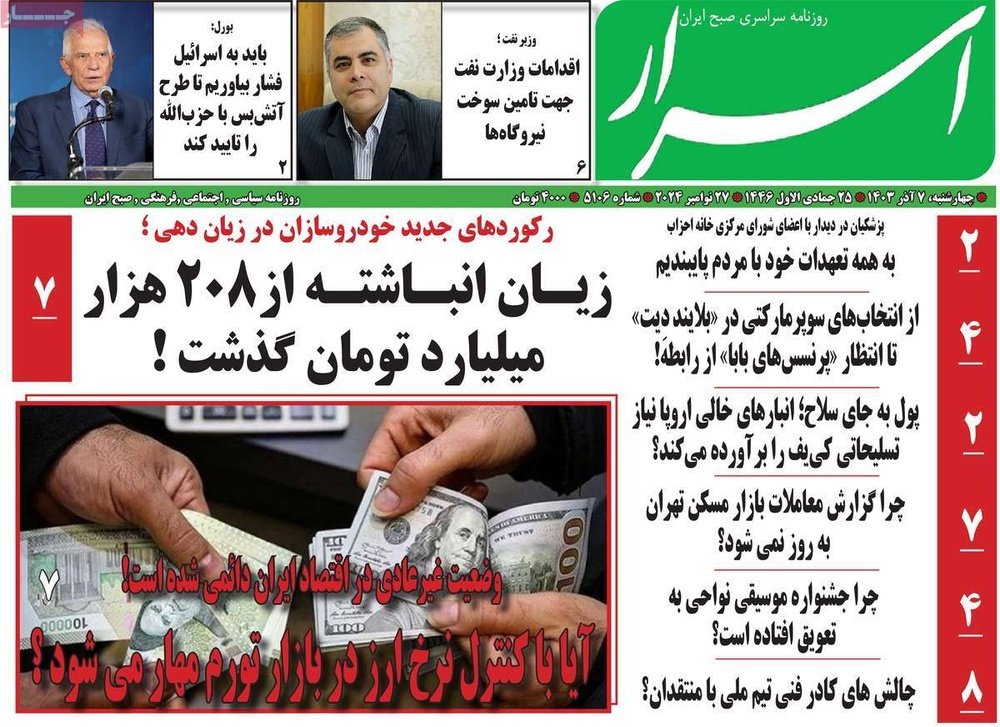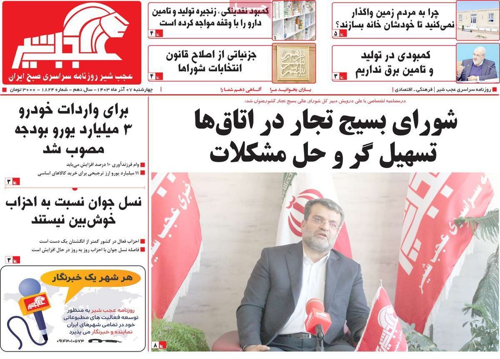 مطبوعات ۷ آذر ۱۴۰۳ - ۰۷:۳۸ کد مطلب: 135545 دریافت تصاویر صفحه اول روزنامههای چهارشنبه ۷ آذرماه ۱۴۰۳ برچسبها مطبوعات