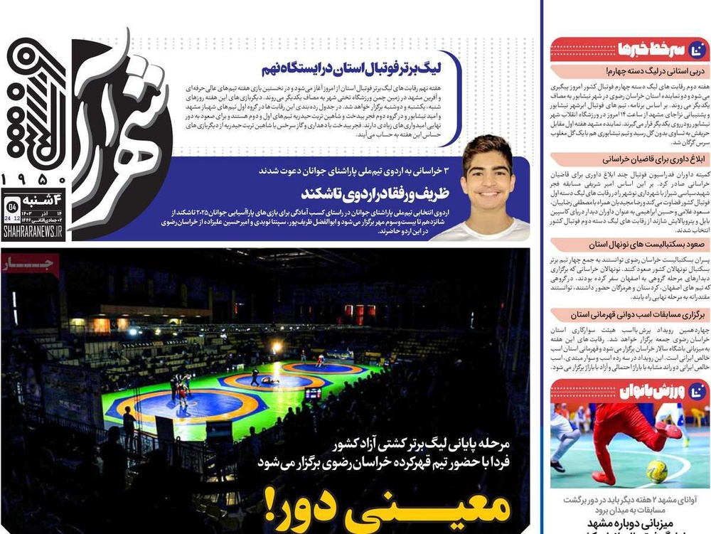 مطبوعات ۱۴ آذر ۱۴۰۳ - ۰۸:۴۳ کد مطلب: 135784 دریافت تصاویر صفحه اول روزنامههای چهارشنبه ۱۴ آذرماه ۱۴۰۳ برچسبها مطبوعات