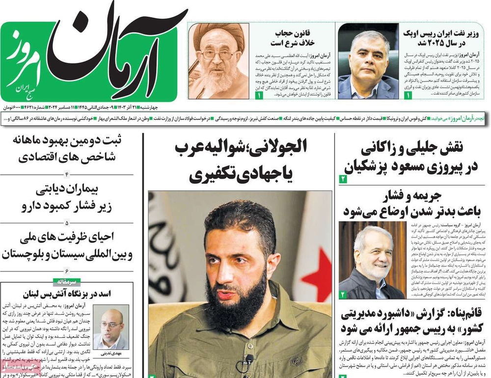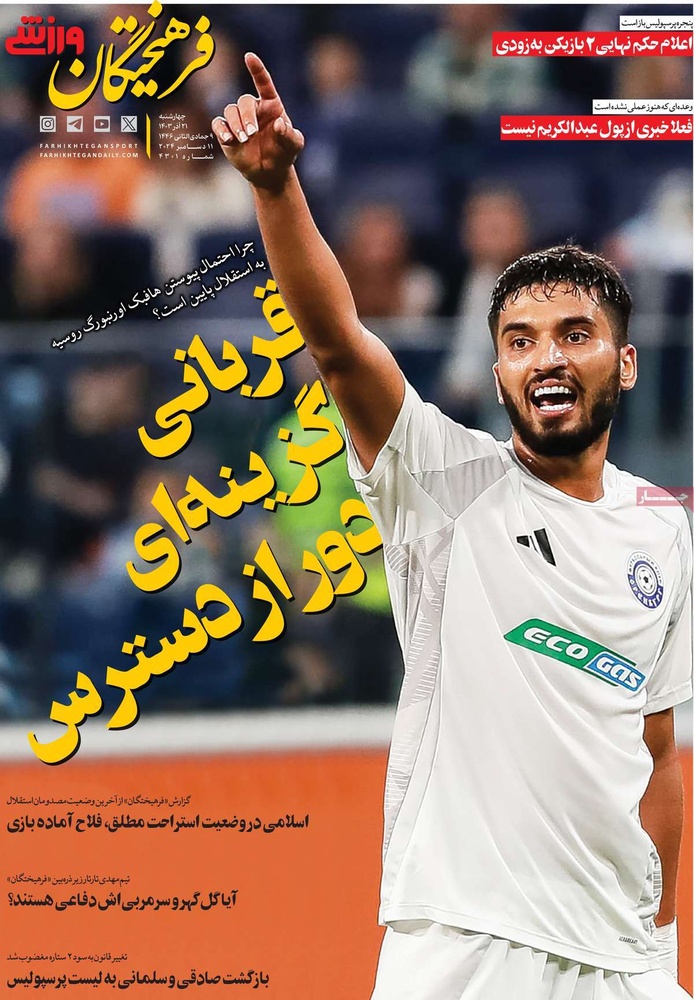 مطبوعات ۲۱ آذر ۱۴۰۳ - ۰۸:۴۲ کد مطلب: 136000 دریافت تصاویر صفحه اول روزنامههای چهارشنبه ۲۱ آذرماه ۱۴۰۳ برچسبها مطبوعات