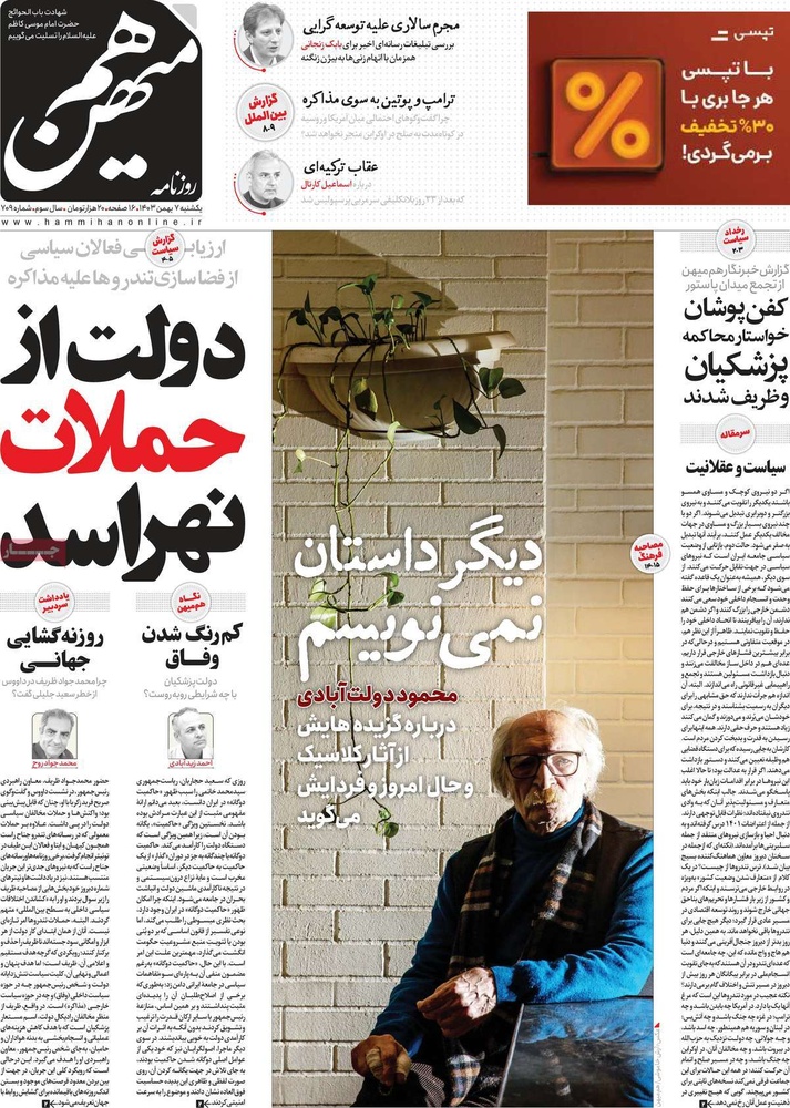مطبوعات ۷ بهمن ۱۴۰۳ - ۰۸:۳۰ کد مطلب: 136912 دریافت تصاویر صفحه اول روزنامههای یکشنبه ۷ بهمنماه ۱۴۰۳ برچسبها مطبوعات