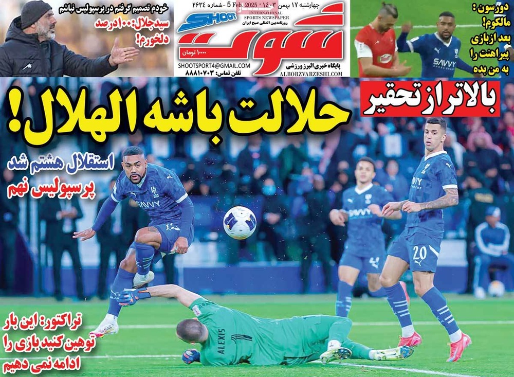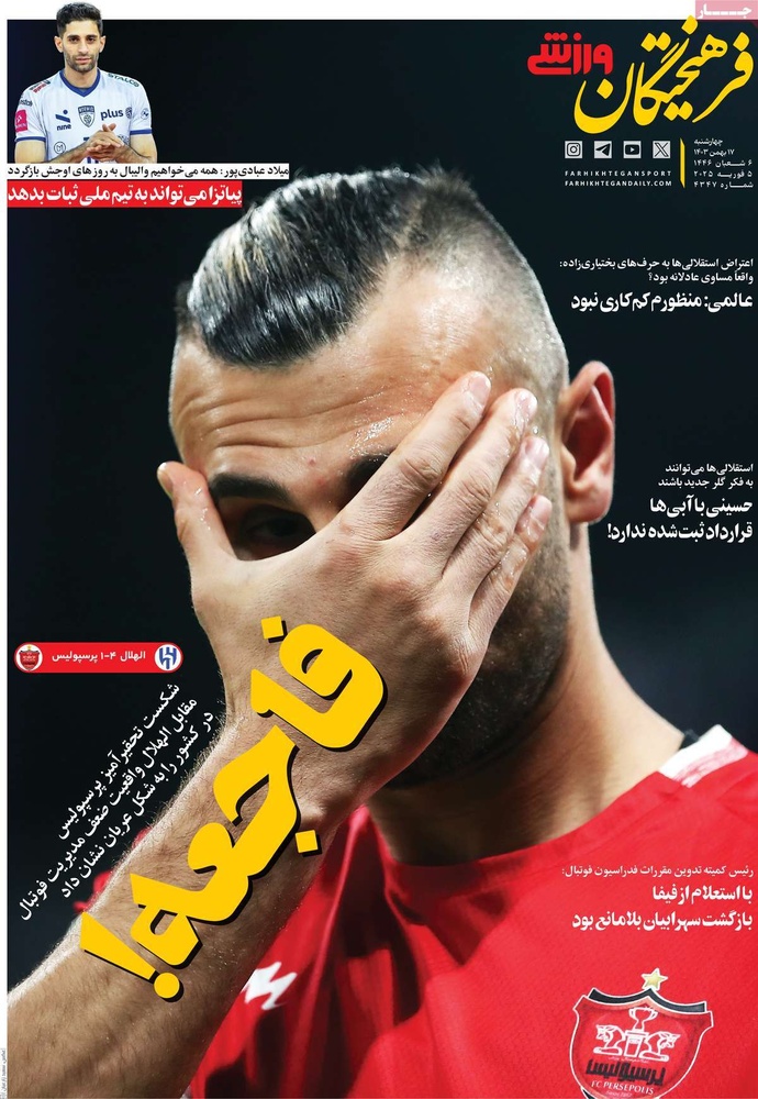 مطبوعات ۱۷ بهمن ۱۴۰۳ - ۰۸:۵۵ کد مطلب: 137107 دریافت تصاویر صفحه اول روزنامههای چهارشنبه ۱۷ بهمنماه ۱۴۰۳ برچسبها مطبوعات