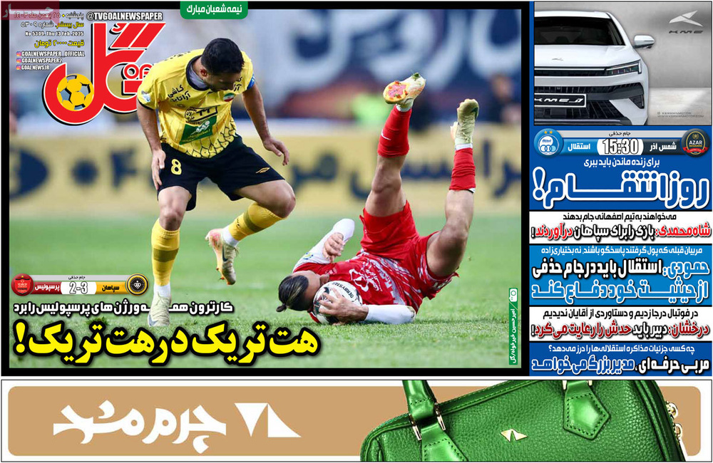 مطبوعات ۲۵ بهمن ۱۴۰۳ - ۰۹:۳۵ کد مطلب: 137266 دریافت تصاویر صفحه اول روزنامههای پنجشنبه ۲۵ بهمنماه ۱۴۰۳ برچسبها مطبوعات