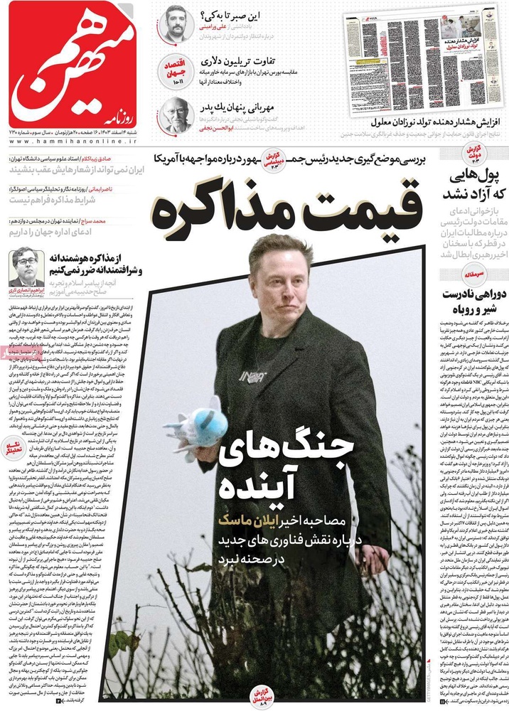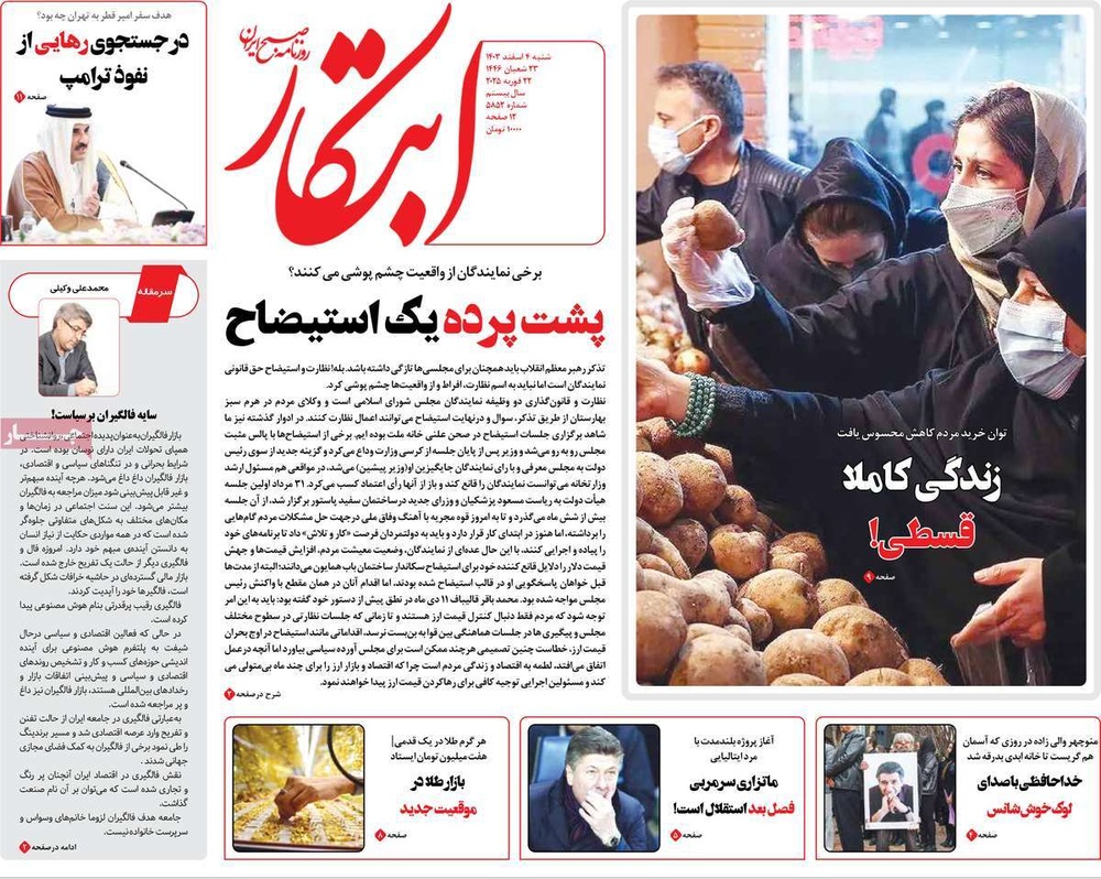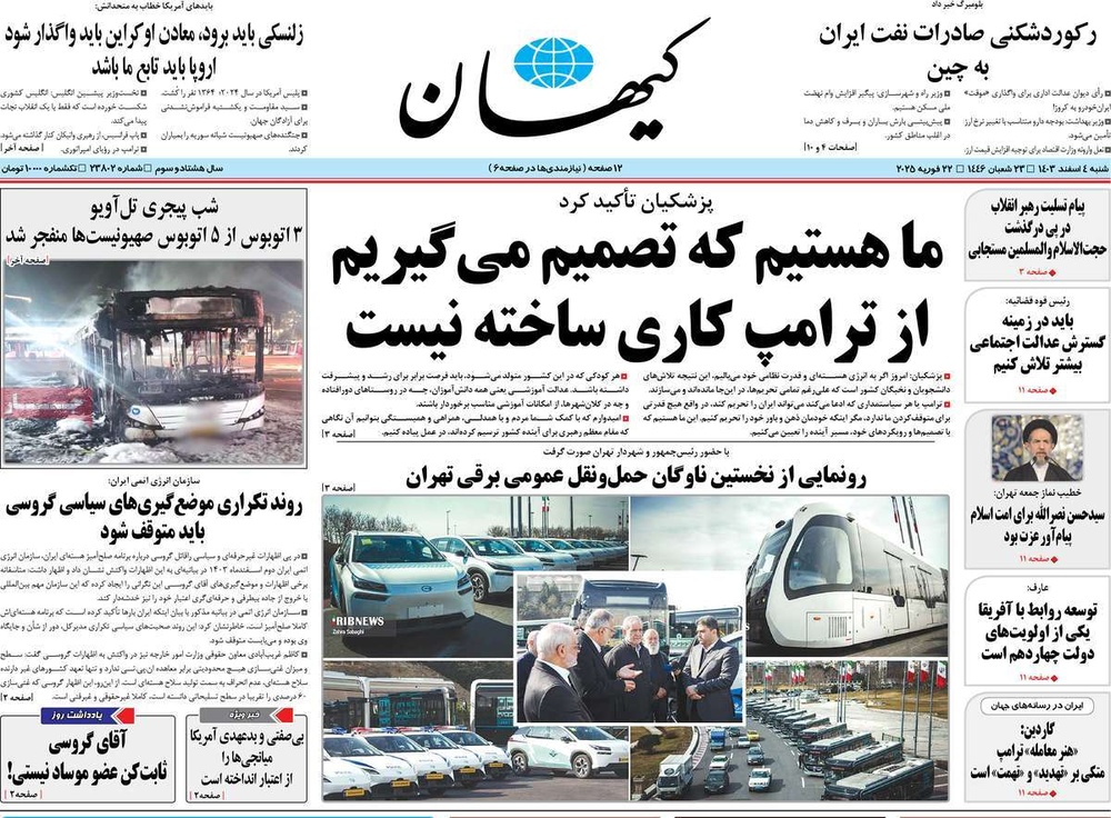 مطبوعات ۴ اسفند ۱۴۰۳ - ۰۹:۲۶ کد مطلب: 137440 صفحه اول روزنامههای شنبه ۴ اسفندماه ۱۴۰۳ برچسبها مطبوعات