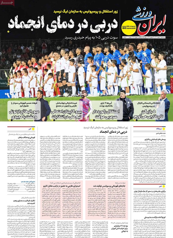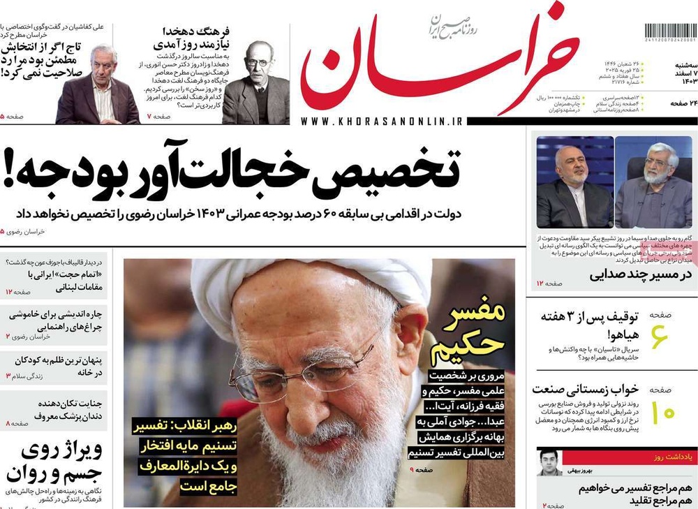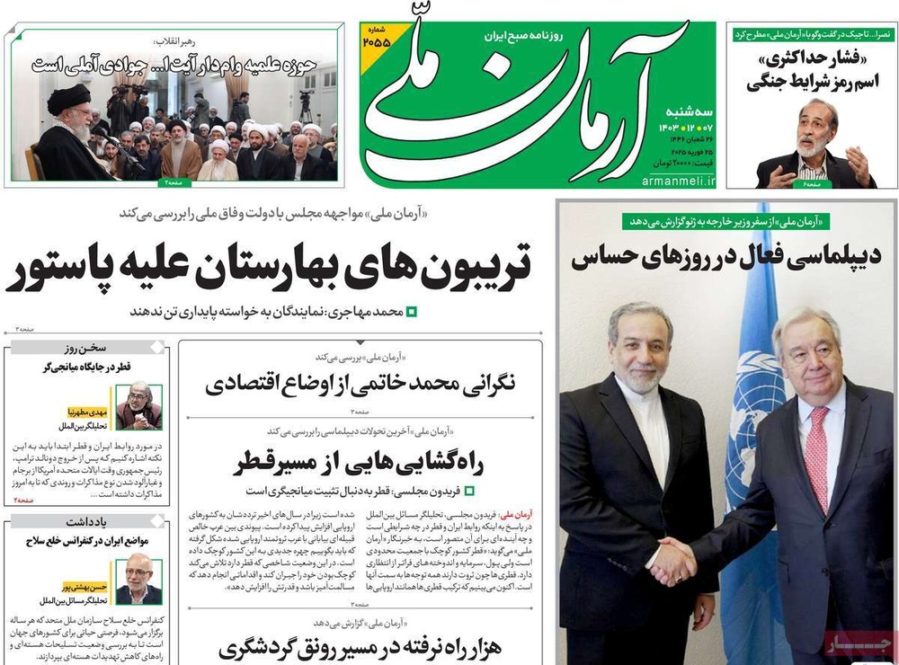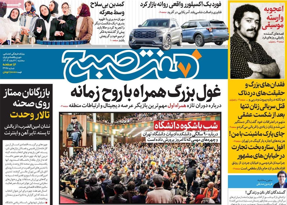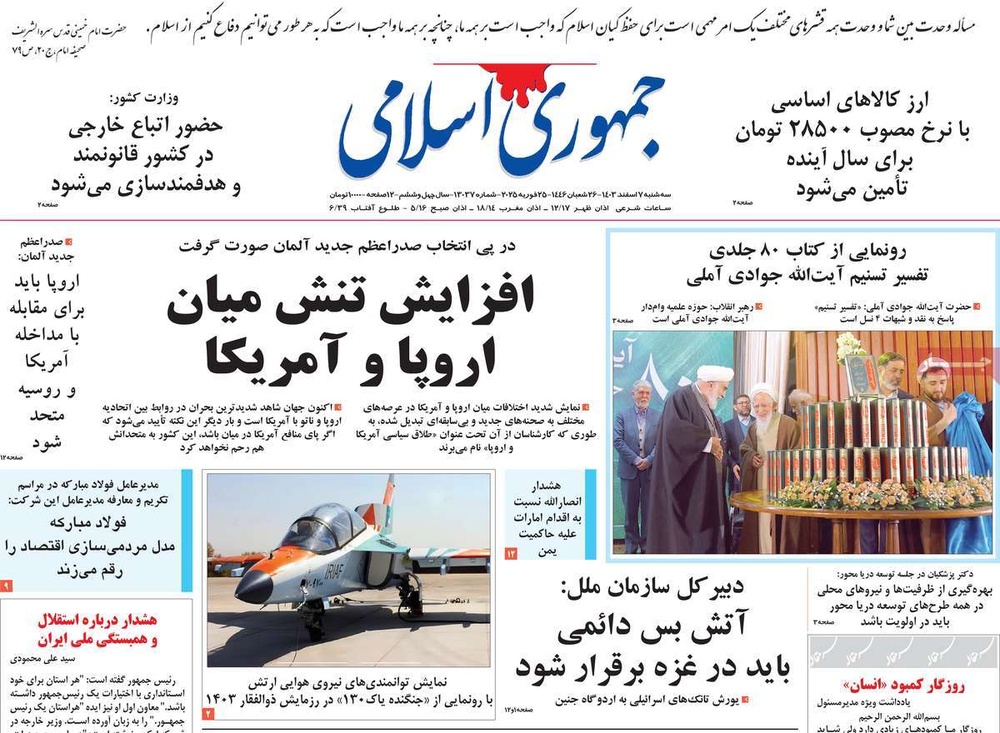 مطبوعات ۷ اسفند ۱۴۰۳ - ۱۰:۲۷ کد مطلب: 137503 صفحه اول روزنامههای سهشنبه ۷ اسفندماه ۱۴۰۳ برچسبها مطبوعات