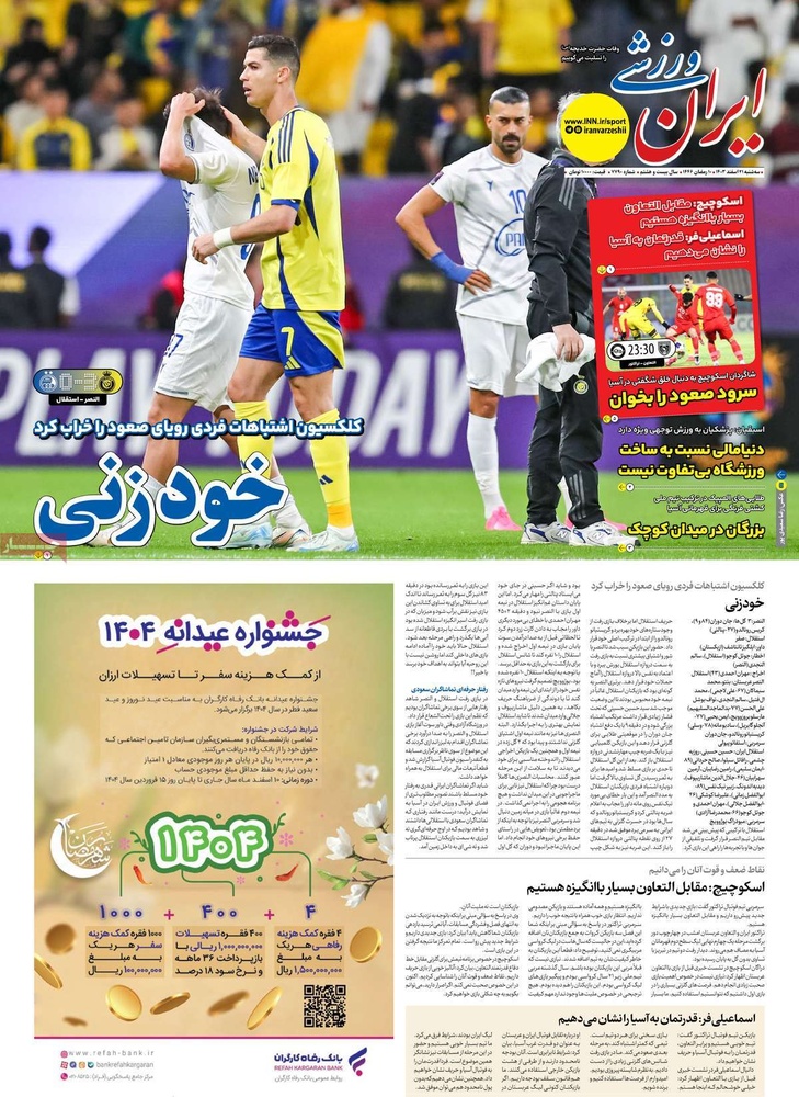 مطبوعات ۲۱ اسفند ۱۴۰۳ - ۰۸:۱۱ کد مطلب: 137832 دریافت تصاویر صفحه اول روزنامههای سهشنبه ۲۱ اسفندماه ۱۴۰۳ برچسبها مطبوعات