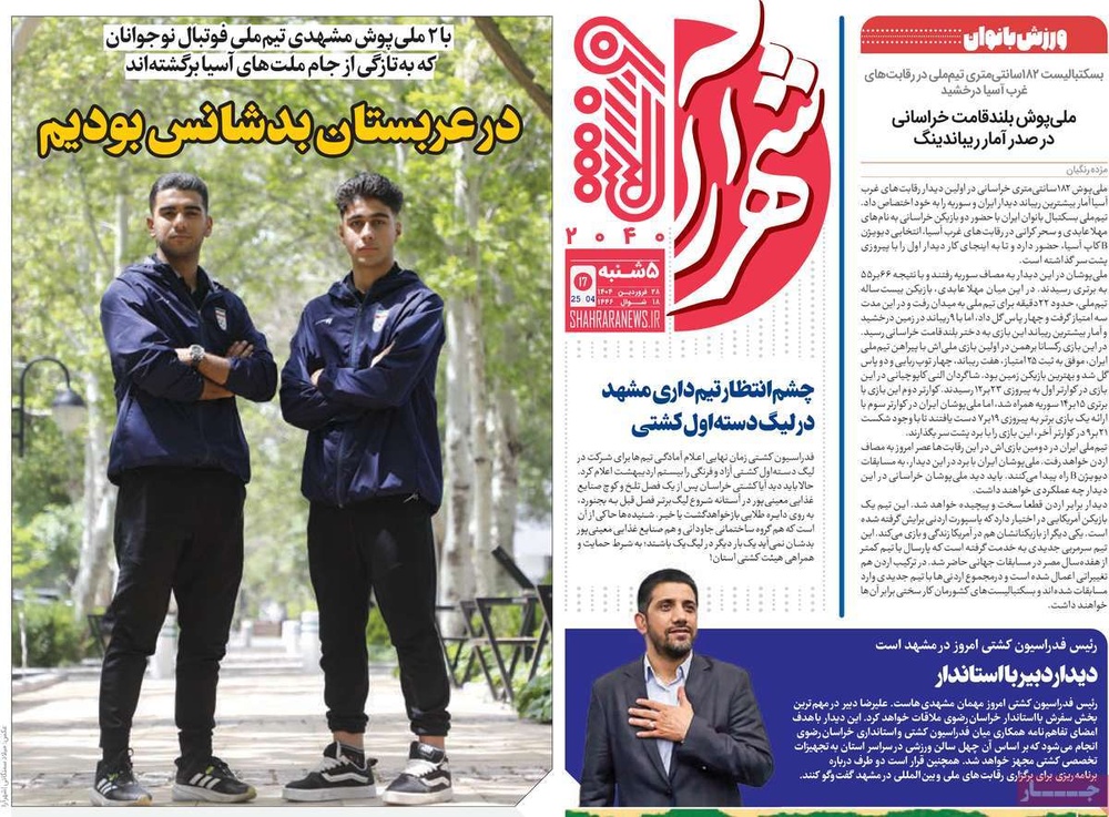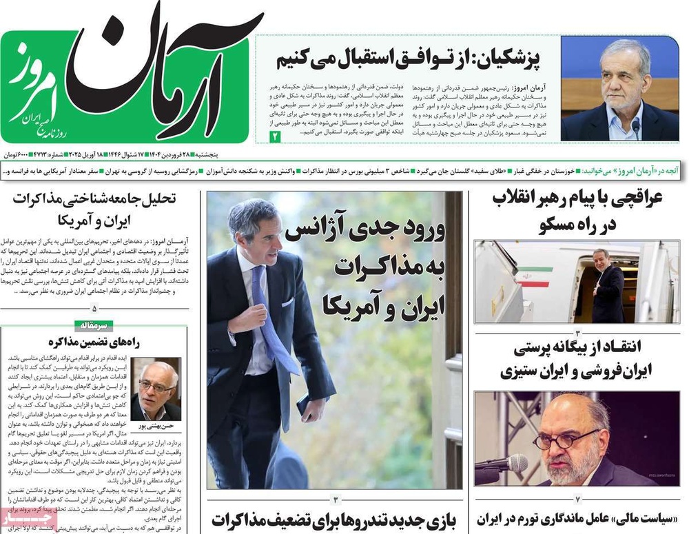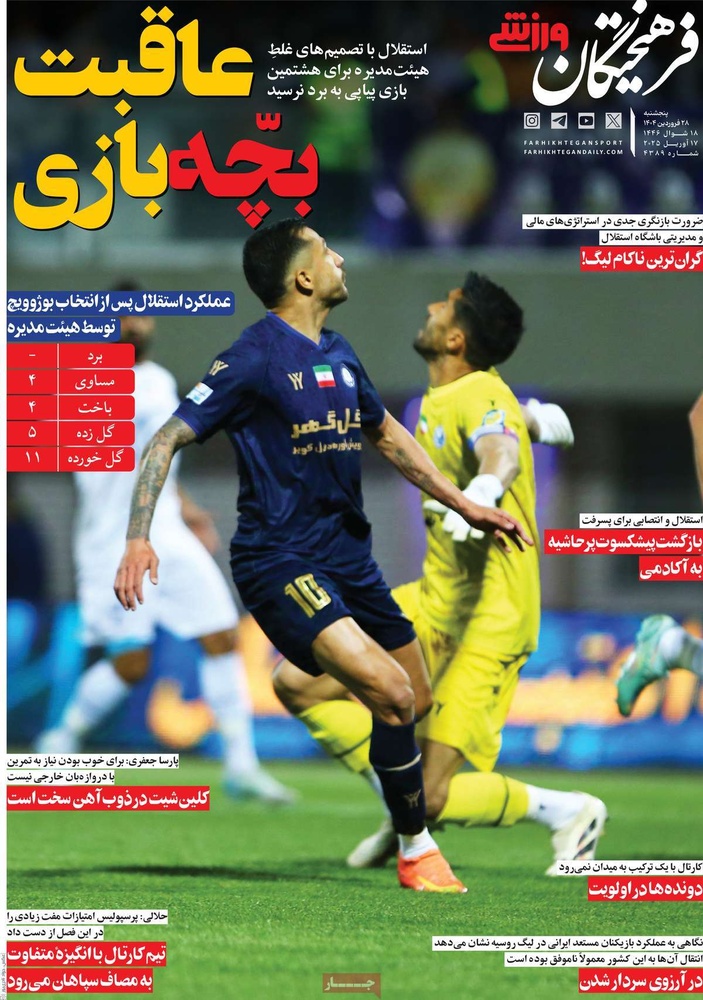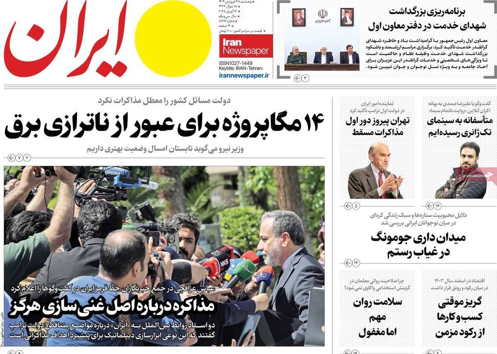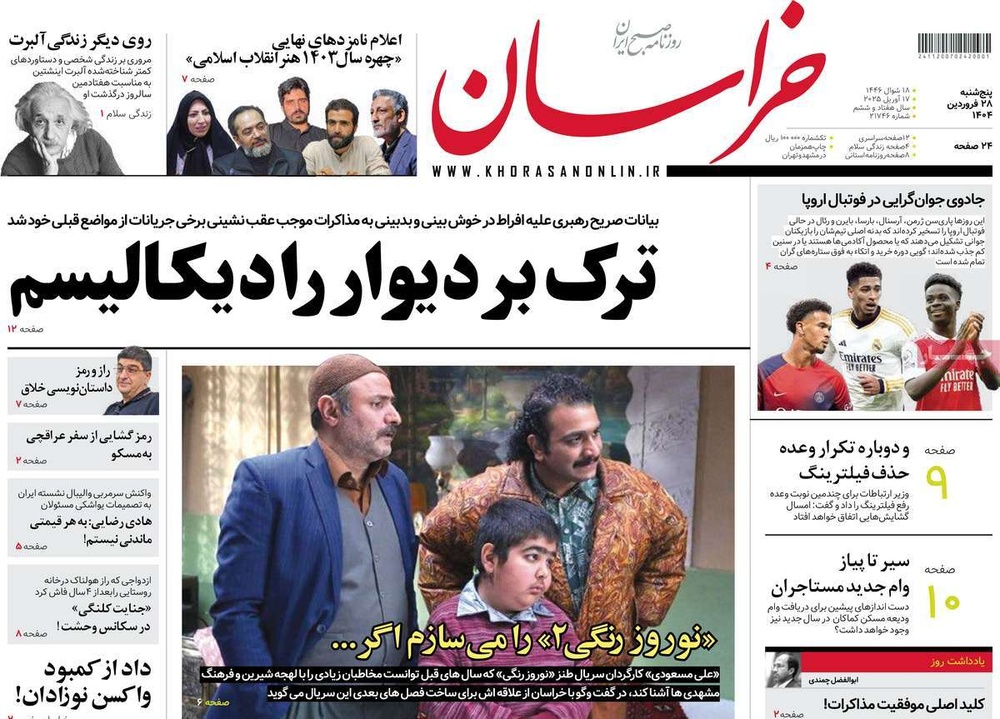 مطبوعات ۲۸ فروردین ۱۴۰۴ - ۰۹:۲۷ کد مطلب: 138309 دریافت تصاویر صفحه اول روزنامههای پنجشنبه ۲۸ فروردینماه ۱۴۰۴ برچسبها مطبوعات