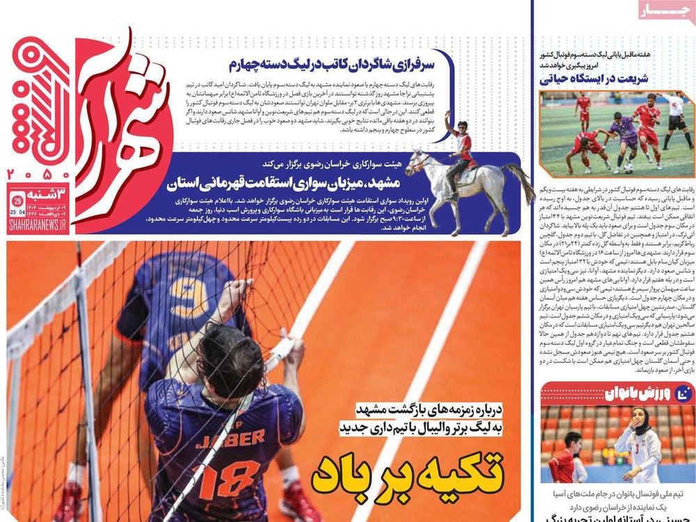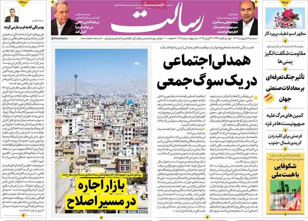 مطبوعات ۹ اردیبهشت ۱۴۰۴ - ۰۹:۳۱ کد مطلب: 138635 دریافت تصاویر صفحه اول روزنامههای سهشنبه ۹ اردیبهشتماه ۱۴۰۴ برچسبها مطبوعات