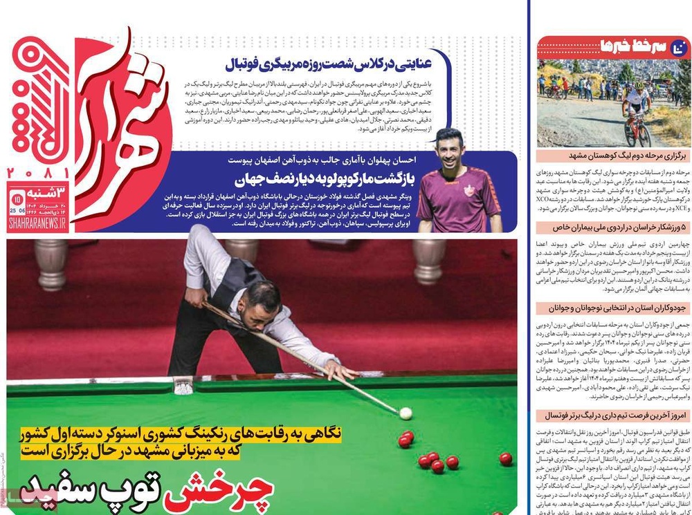مطبوعات ۲۰ خرداد ۱۴۰۴ - ۰۷:۲۱ کد مطلب: 139636 صفحه اول روزنامههای سهشنبه ۲۰ خردادماه ۱۴۰۴ برچسبها مطبوعات