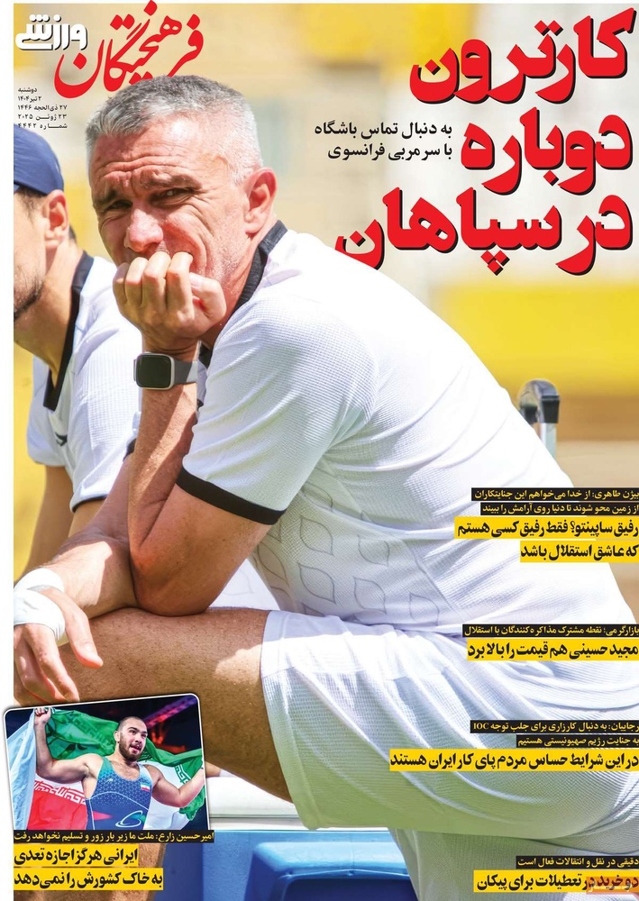 مطبوعات ۲ تیر ۱۴۰۴ - ۰۸:۴۳ کد مطلب: 139800 صفحه اول روزنامههای دوشنبه ۲ تیرماه ۱۴۰۴ برچسبها مطبوعات