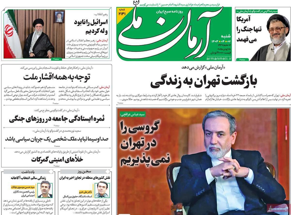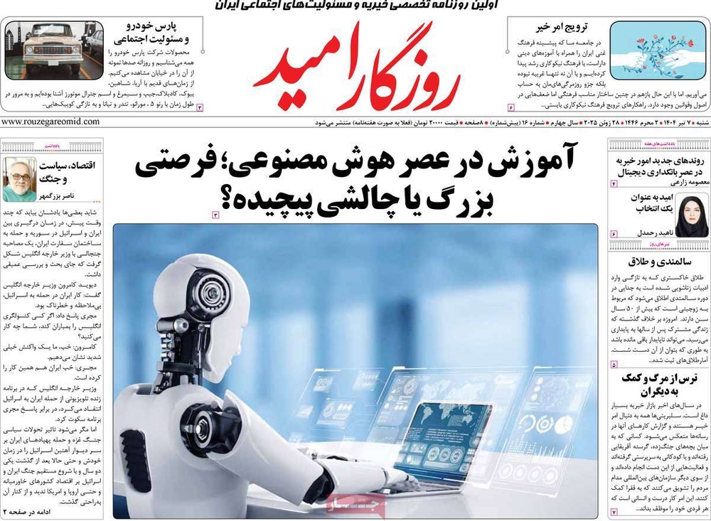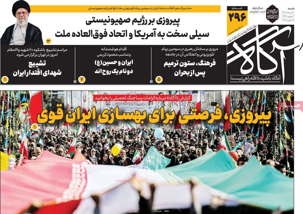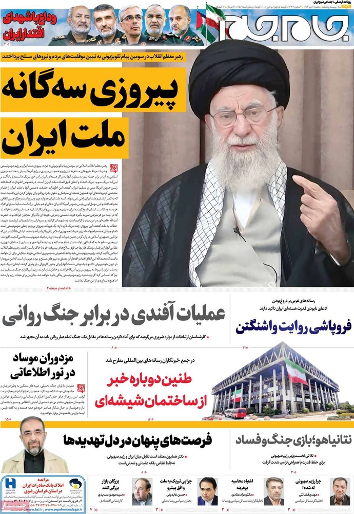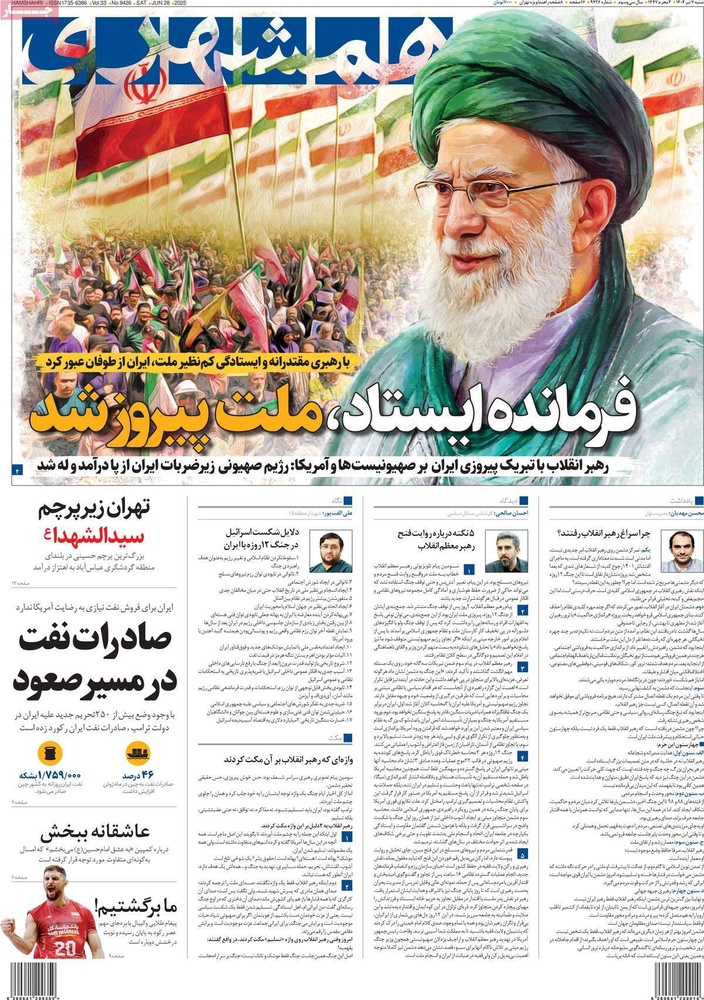 مطبوعات ۷ تیر ۱۴۰۴ - ۰۸:۰۸ کد مطلب: 139864 دریافت تصاویر صفحه اول روزنامههای شنبه ۷ تیرماه ۱۴۰۴ برچسبها مطبوعات