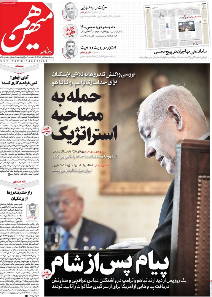 مطبوعات ۱۸ تیر ۱۴۰۴ - ۰۷:۵۲ کد مطلب: 140092 دریافت تصاویر صفحه اول روزنامههای چهارشنبه ۱۸ تیرماه ۱۴۰۴ برچسبها مطبوعات