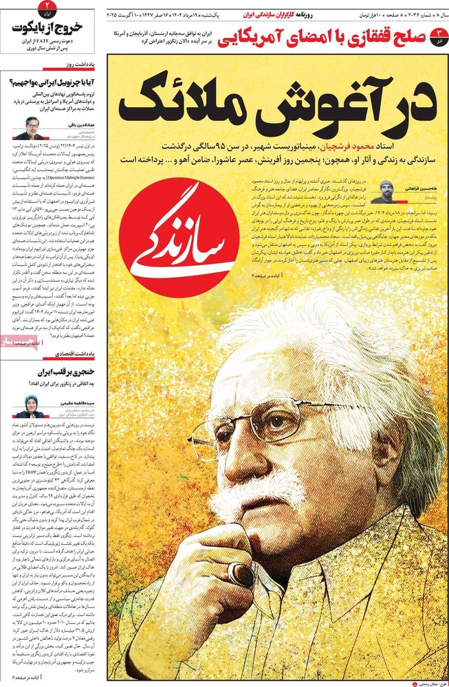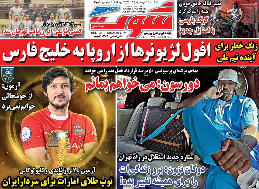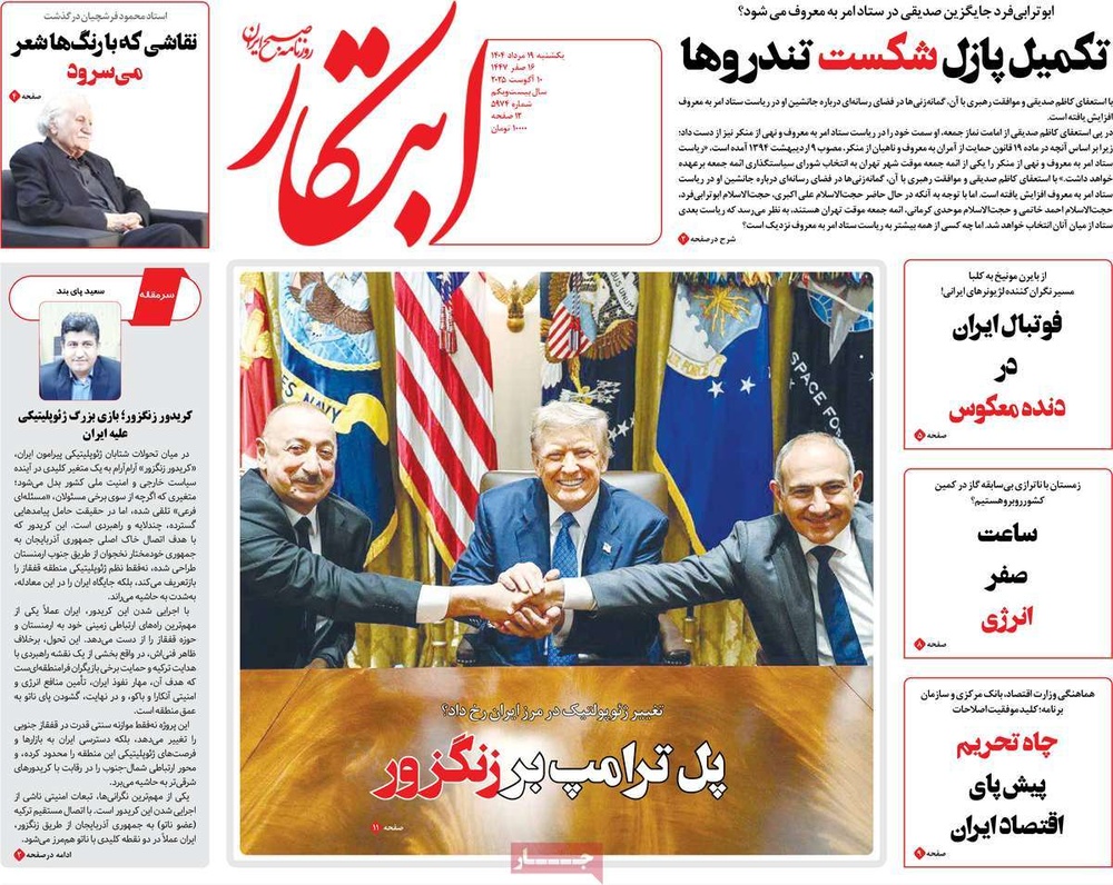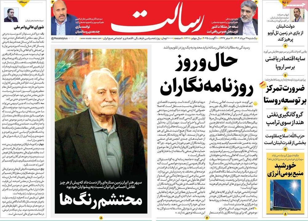 مطبوعات ۱۹ مرداد ۱۴۰۴ - ۱۰:۱۸ کد مطلب: 140653 دریافت تصاویر صفحه اول روزنامههای یکشنبه ۱۹ مردادماه ۱۴۰۴ برچسبها مطبوعات