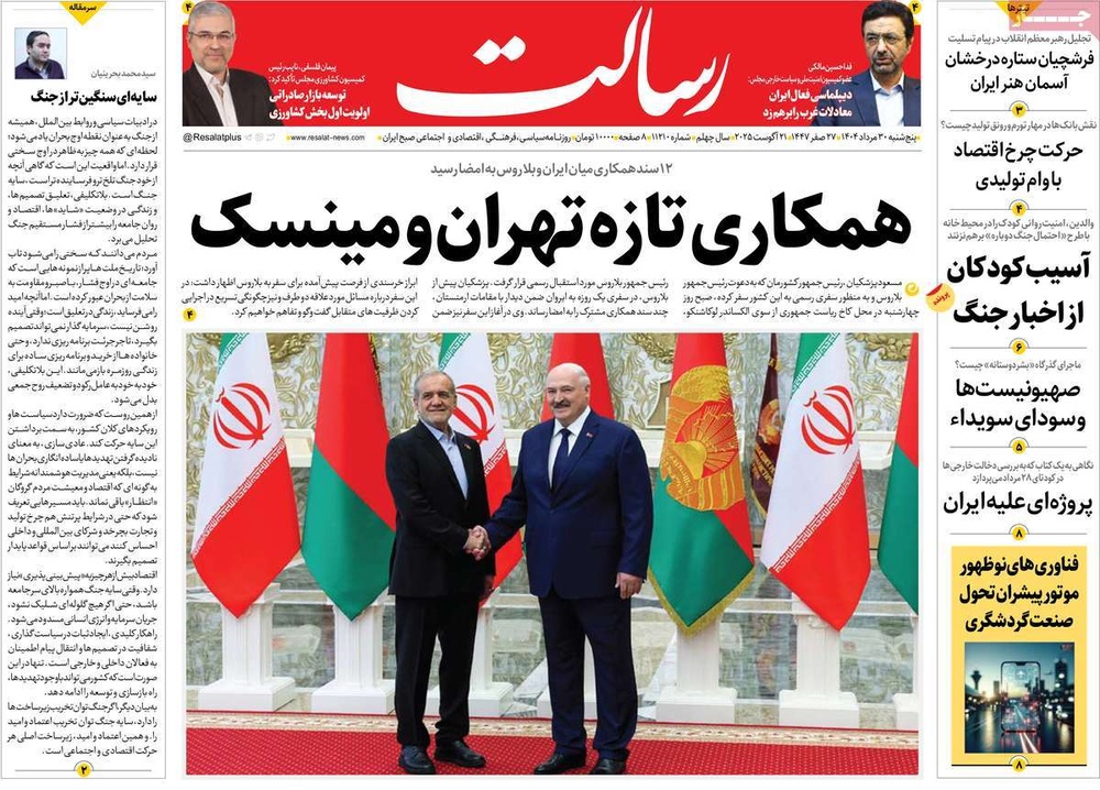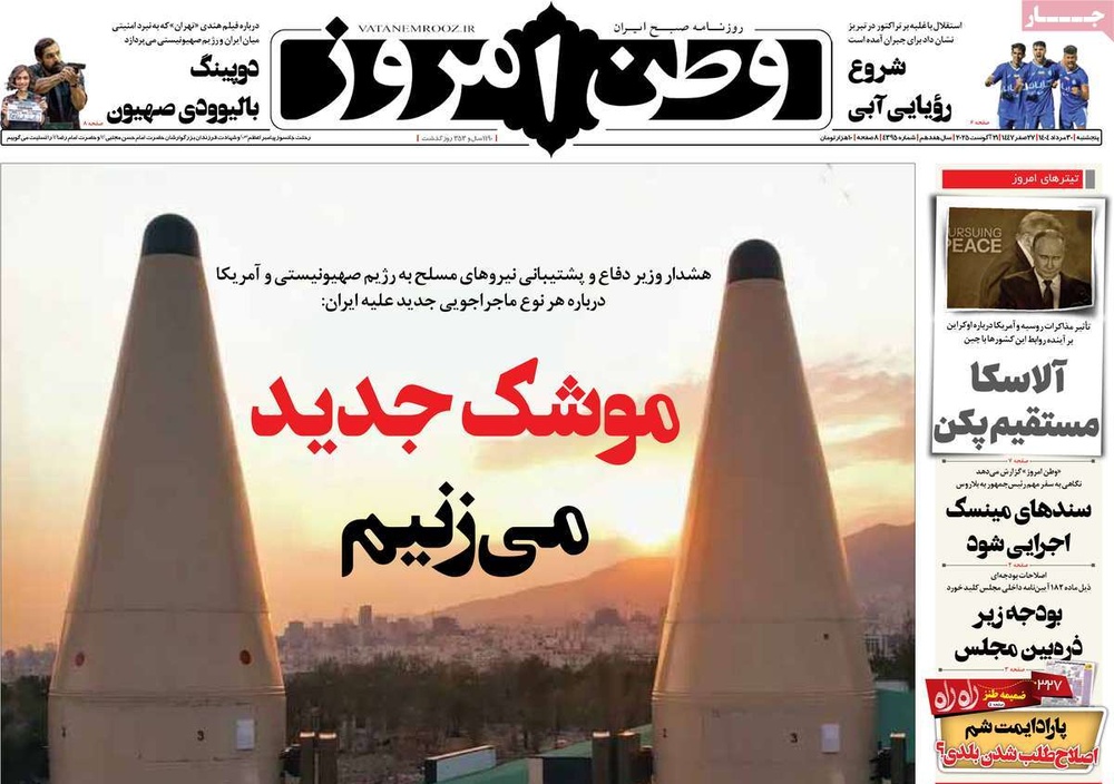 مطبوعات ۳۰ مرداد ۱۴۰۴ - ۱۳:۱۶ کد مطلب: 140748 دریافت تصاویر صفحه اول روزنامههای پنجشنبه ۳۰ مردادماه ۱۴۰۴ برچسبها مطبوعات