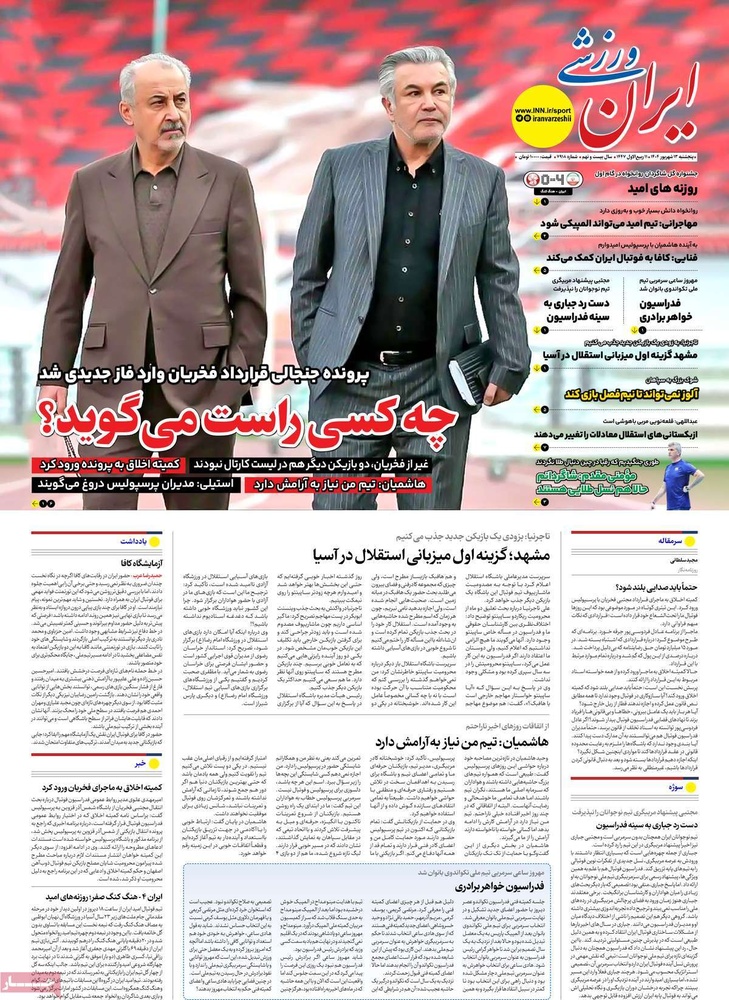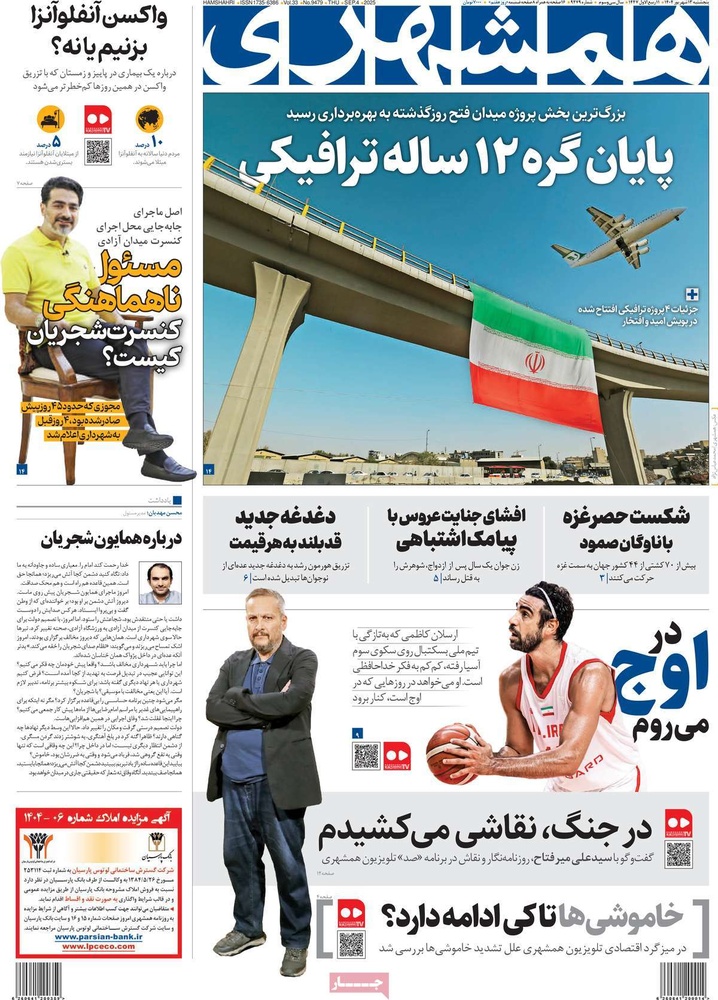 مطبوعات ۱۳ شهریور ۱۴۰۴ - ۱۴:۰۴ کد مطلب: 140937 دریافت تصاویر صفحه اول روزنامههای پنجشنبه ۱۳ شهریورماه ۱۴۰۴ برچسبها مطبوعات