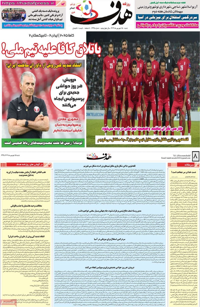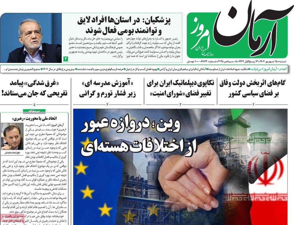 مطبوعات ۱۵ شهریور ۱۴۰۴ - ۰۸:۱۸ کد مطلب: 140940 دریافت تصاویر صفحه اول روزنامههای شنبه ۱۵ شهریورماه ۱۴۰۴ برچسبها مطبوعات