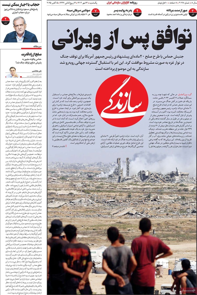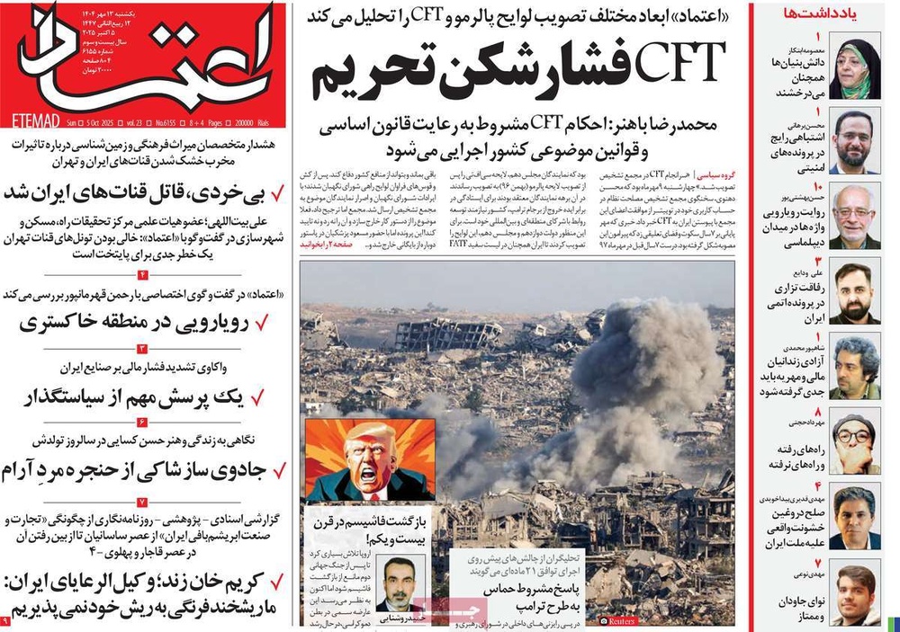 مطبوعات ۱۳ مهر ۱۴۰۴ - ۰۷:۳۸ کد مطلب: 141639 دریافت تصاویر صفحه اول روزنامههای یکشنبه 13 مهرماه 1404 برچسبها مطبوعات