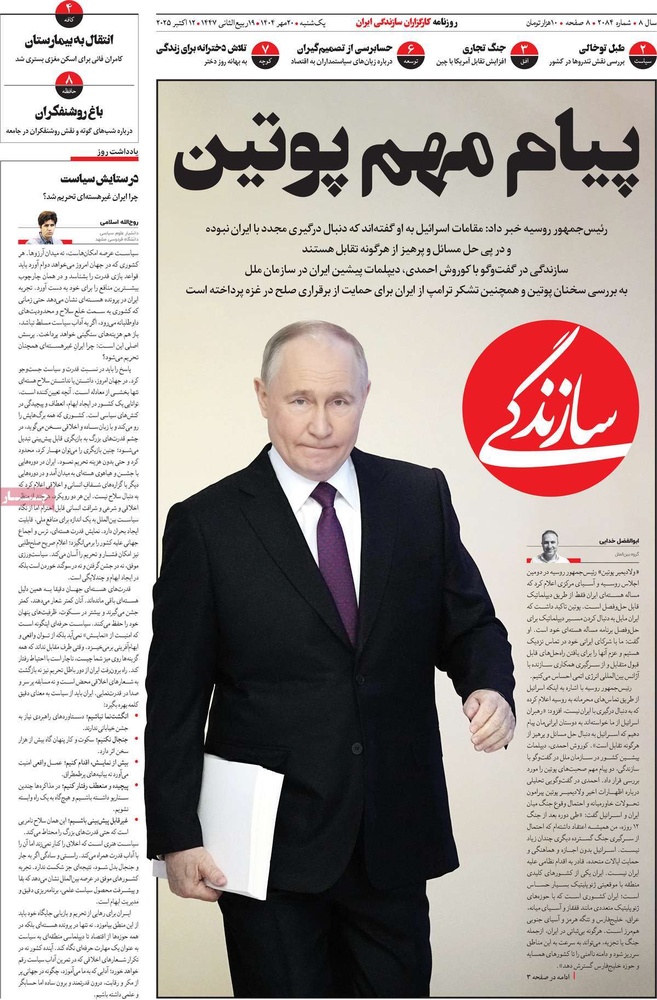 مطبوعات ۲۰ مهر ۱۴۰۴ - ۰۷:۳۹ کد مطلب: 141828 دریافت تصاویر صفحه اول روزنامههای یکشنبه ۲۰ مهرماه ۱۴۰۴ برچسبها مطبوعات