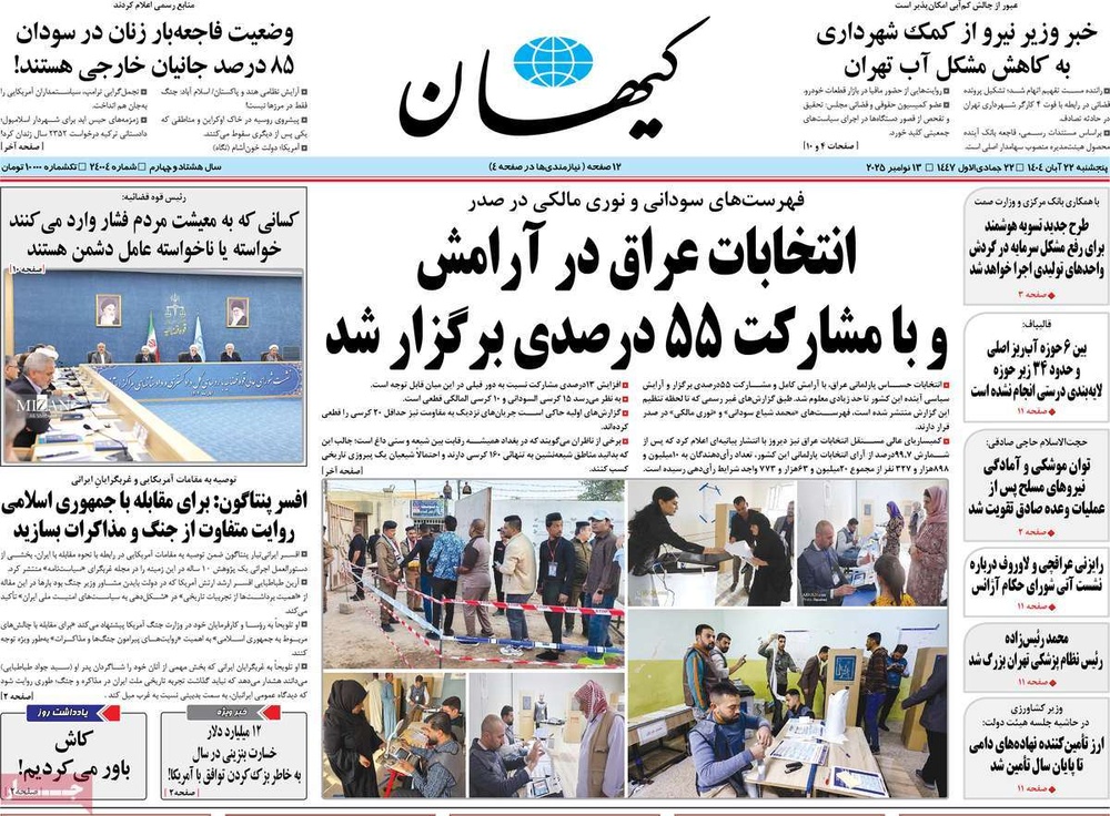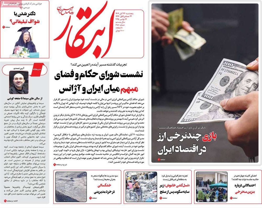 مطبوعات ۲۲ آبان ۱۴۰۴ - ۱۱:۵۶ کد مطلب: 142677 دریافت تصاویر صفحه اول روزنامههای پنجشنبه ۲۲ آبانماه ۱۴۰۴