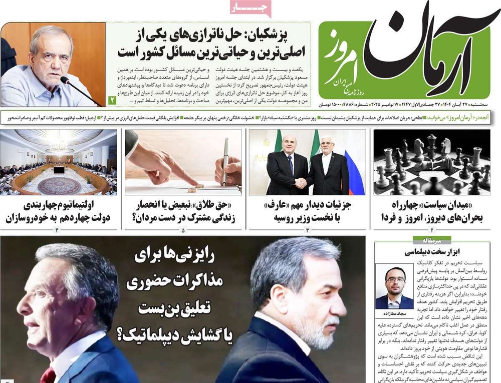 مطبوعات ۲۷ آبان ۱۴۰۴ - ۰۷:۳۴ کد مطلب: 142771 دریافت تصاویر صفحه اول روزنامههای سهشنبه ۲۷ آبانماه ۱۴۰۴ برچسبها مطبوعات