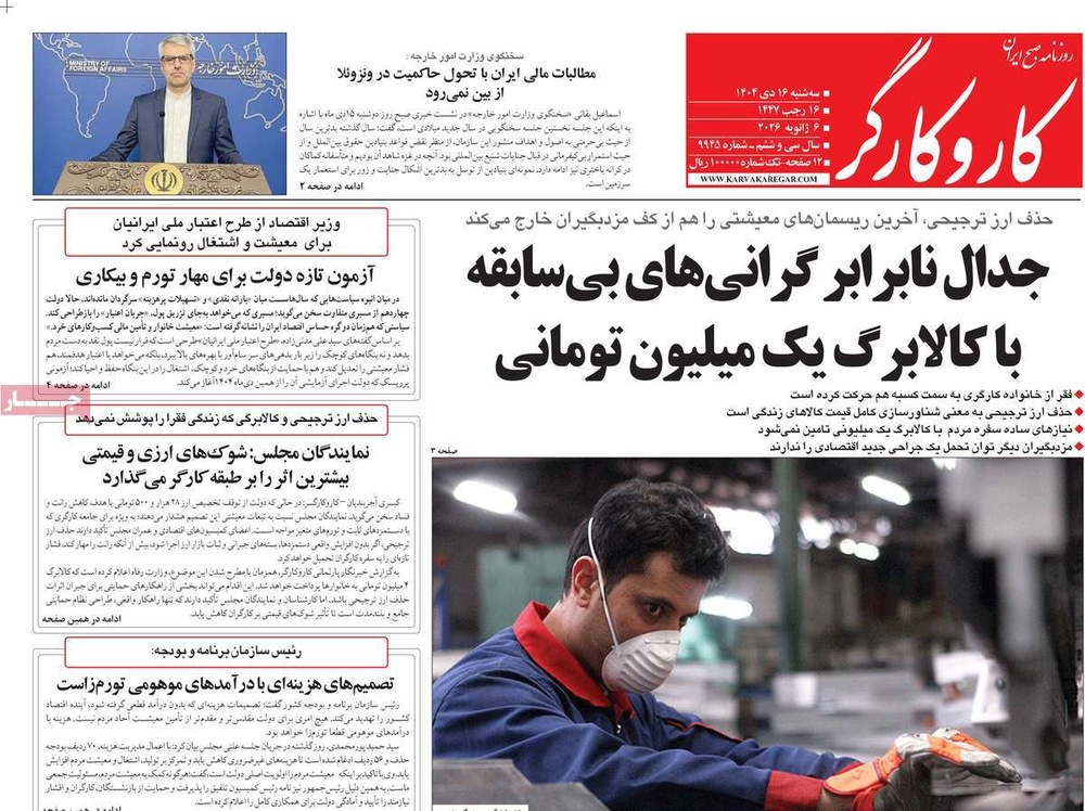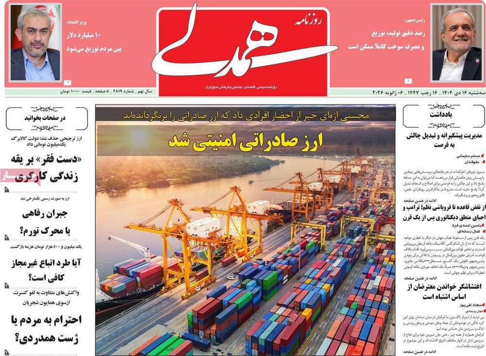 مطبوعات ۱۶ دی ۱۴۰۴ - ۰۸:۲۷ کد مطلب: 144009 دریافت تصاویر صفحه اول روزنامههای سهشنبه ۱۶ دیماه ۱۴۰۴ برچسبها مطبوعات