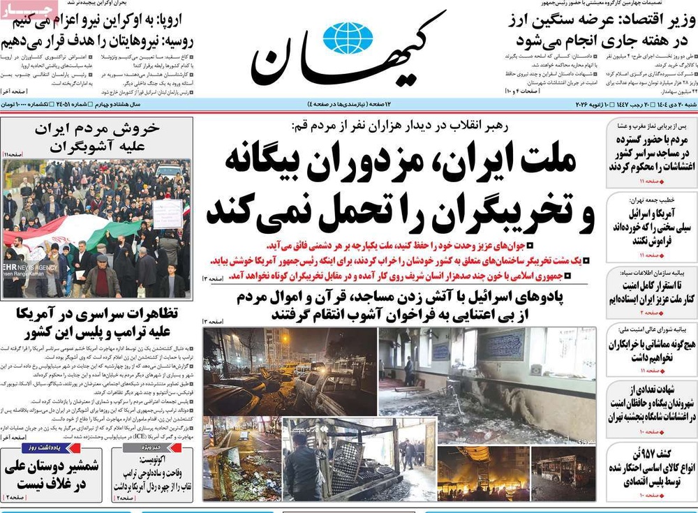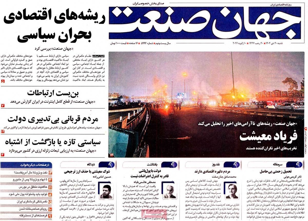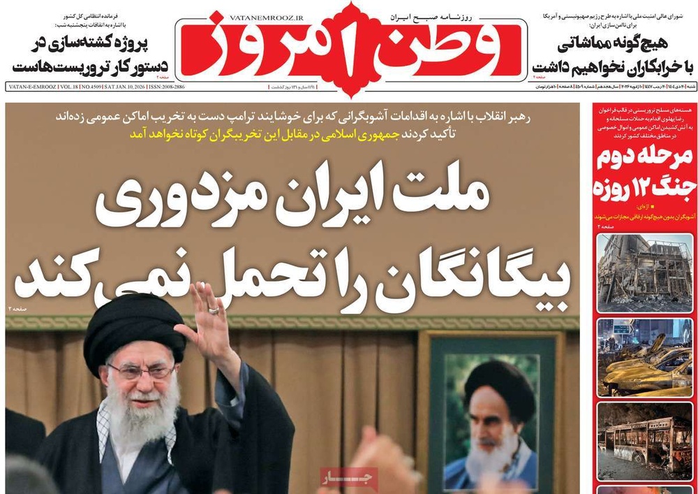 مطبوعات ۲۰ دی ۱۴۰۴ - ۱۰:۴۵ کد مطلب: 144069 دریافت تصاویر صفحه اول روزنامههای شنبه ۲۰ دیماه ۱۴۰۴ برچسبها مطبوعات