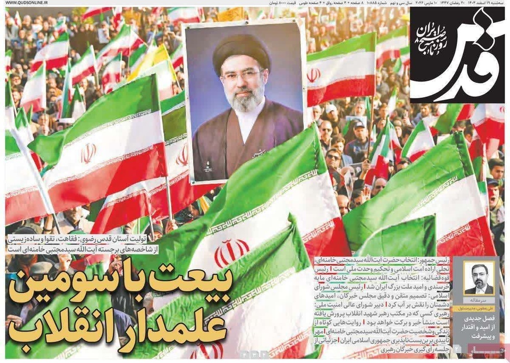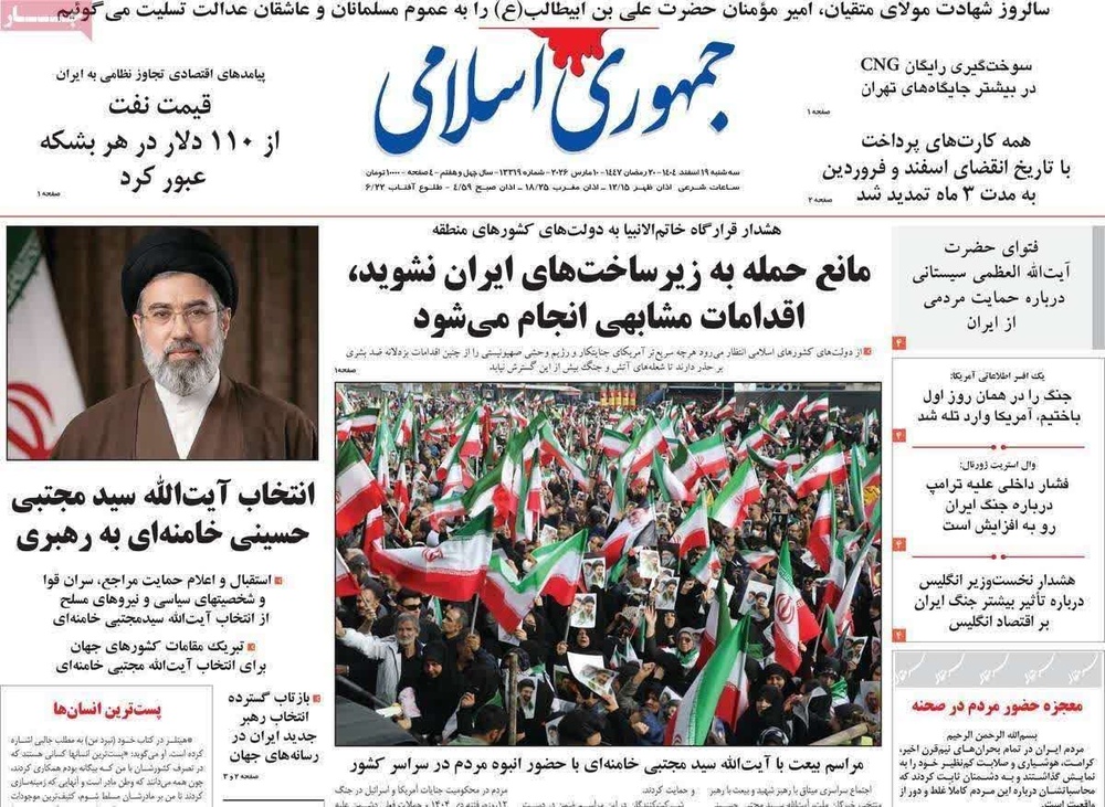 مطبوعات ۱۹ اسفند ۱۴۰۴ - ۱۰:۱۱ کد مطلب: 145101 دریافت تصاویر صفحه اول روزنامههای ۱۹ اسفندماه ۱۴۰۴ برچسبها مطبوعات
