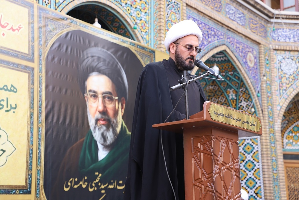 مراسم معنوی «عهد جان» با عنوان «آیین بیعت با ولایت» با حضور بانوان طلبه مرکز مدیریت حوزههای علمیه خواهران، جامعه الزهرا(س) و مدرسه عالی بنت الهدی(س) همزمان با طلاب سراسر کشور، در حرم مطهر بانوی کرامت، حضرت فاطمه معصومه(س) برگزار شد.