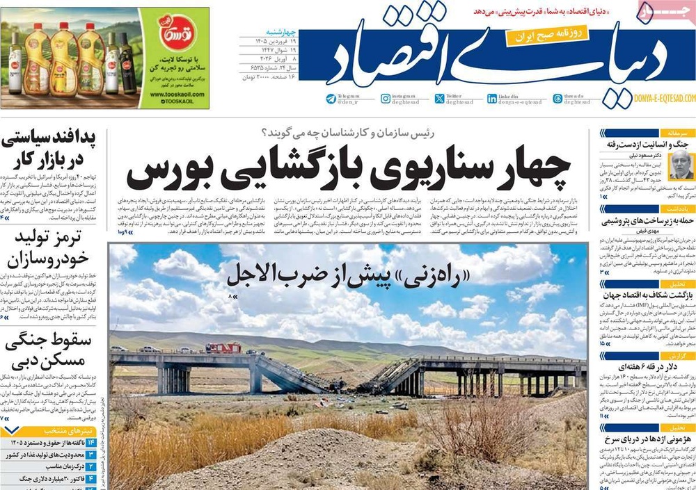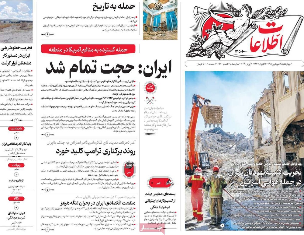 مطبوعات ۱۹ فروردین ۱۴۰۵ - ۱۱:۲۰ کد مطلب: 145379 دریافت تصاویر صفحه اول روزنامههای چهارشنبه ۱۹ فروردینماه ۱۴۰۵ برچسبها مطبوعات