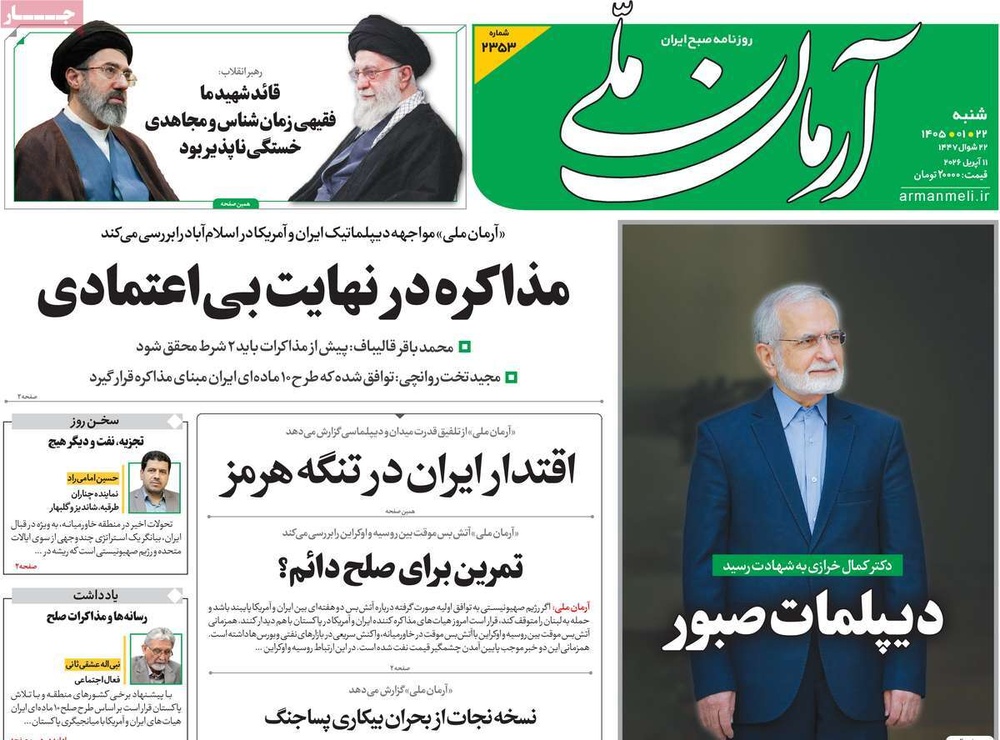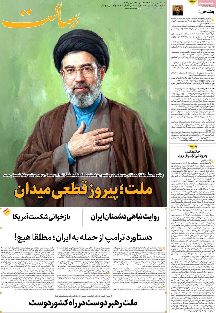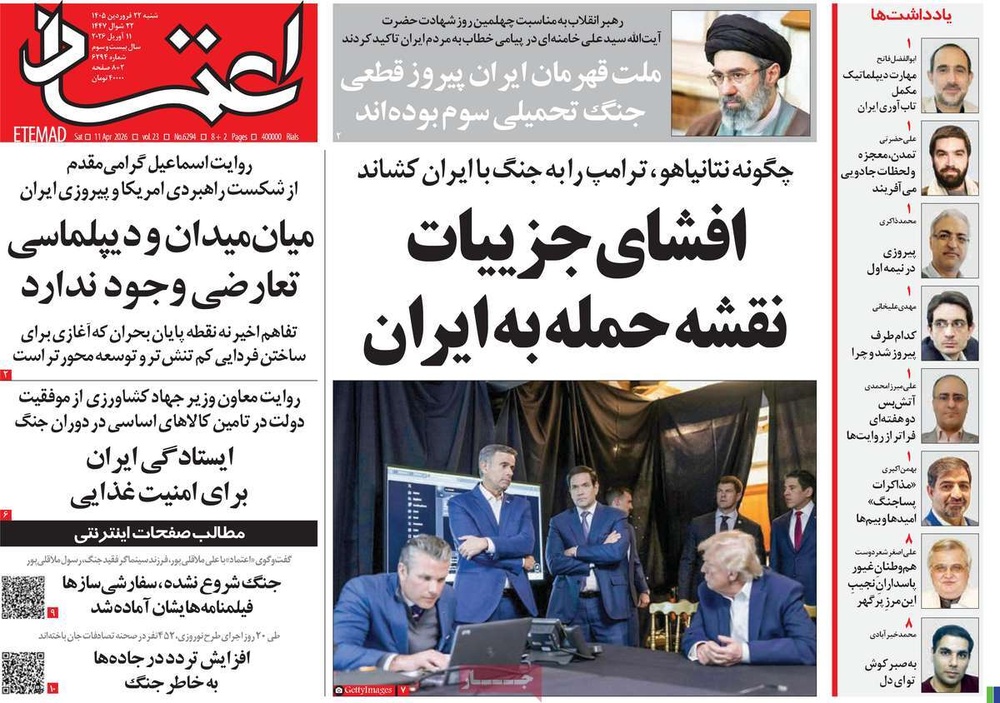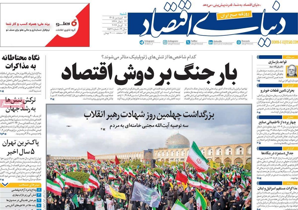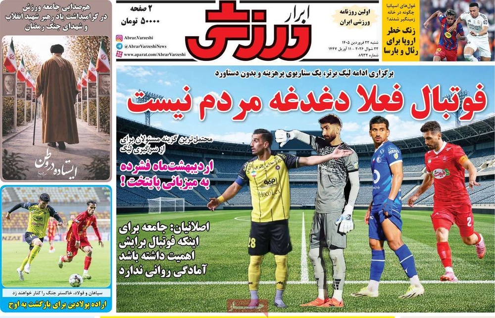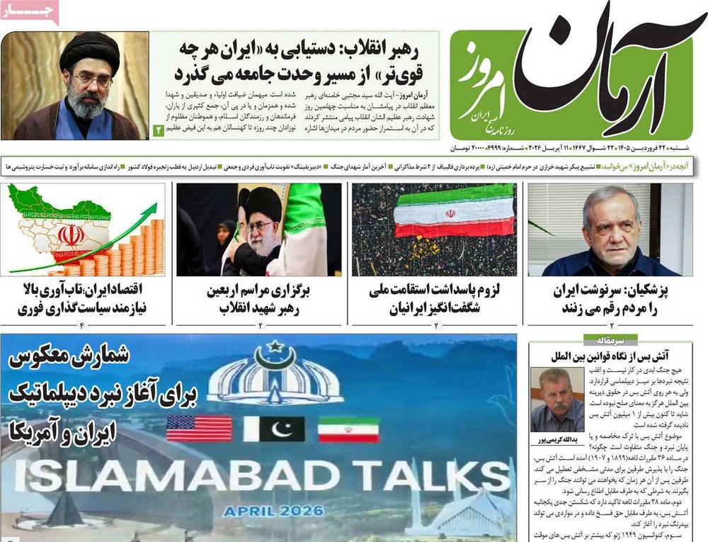 مطبوعات ۲۲ فروردین ۱۴۰۵ - ۱۱:۴۱ کد مطلب: 145428 دریافت تصاویر صفحه اول روزنامههای شنبه ۲۲ فروردینماه ۱۴۰۵ برچسبها مطبوعات