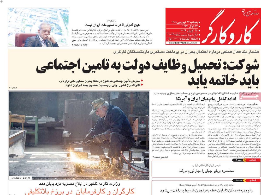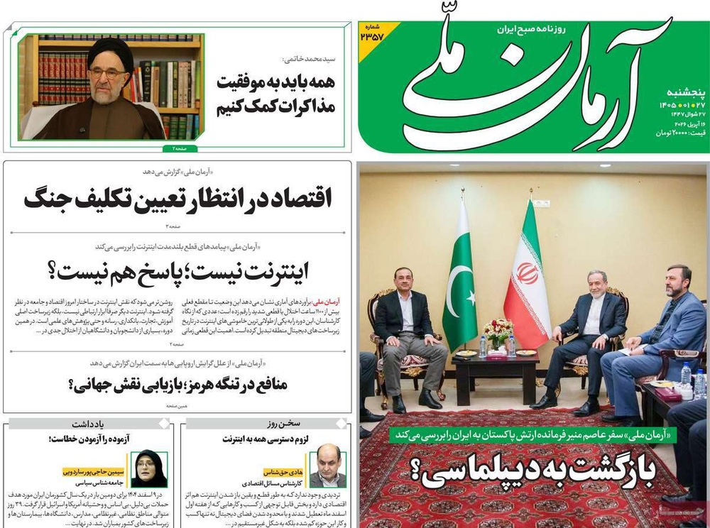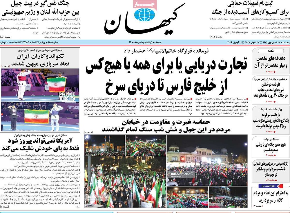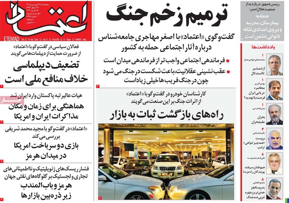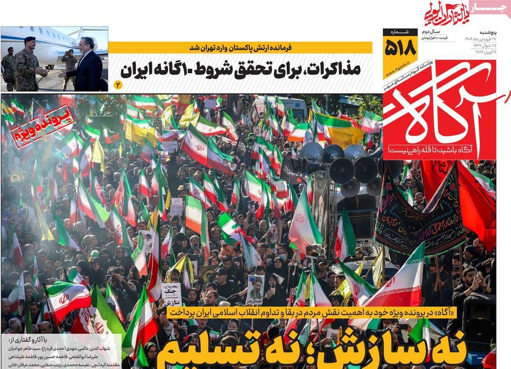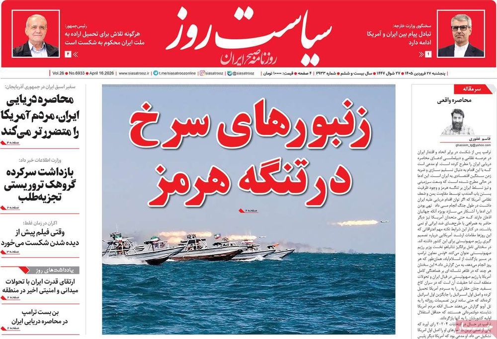 مطبوعات ۲۷ فروردین ۱۴۰۵ - ۱۰:۰۴ کد مطلب: 145501 دریافت تصاویر صفحه اول روزنامههای پنجشنبه ۲۷ فروردینماه ۱۴۰۵ برچسبها مطبوعات